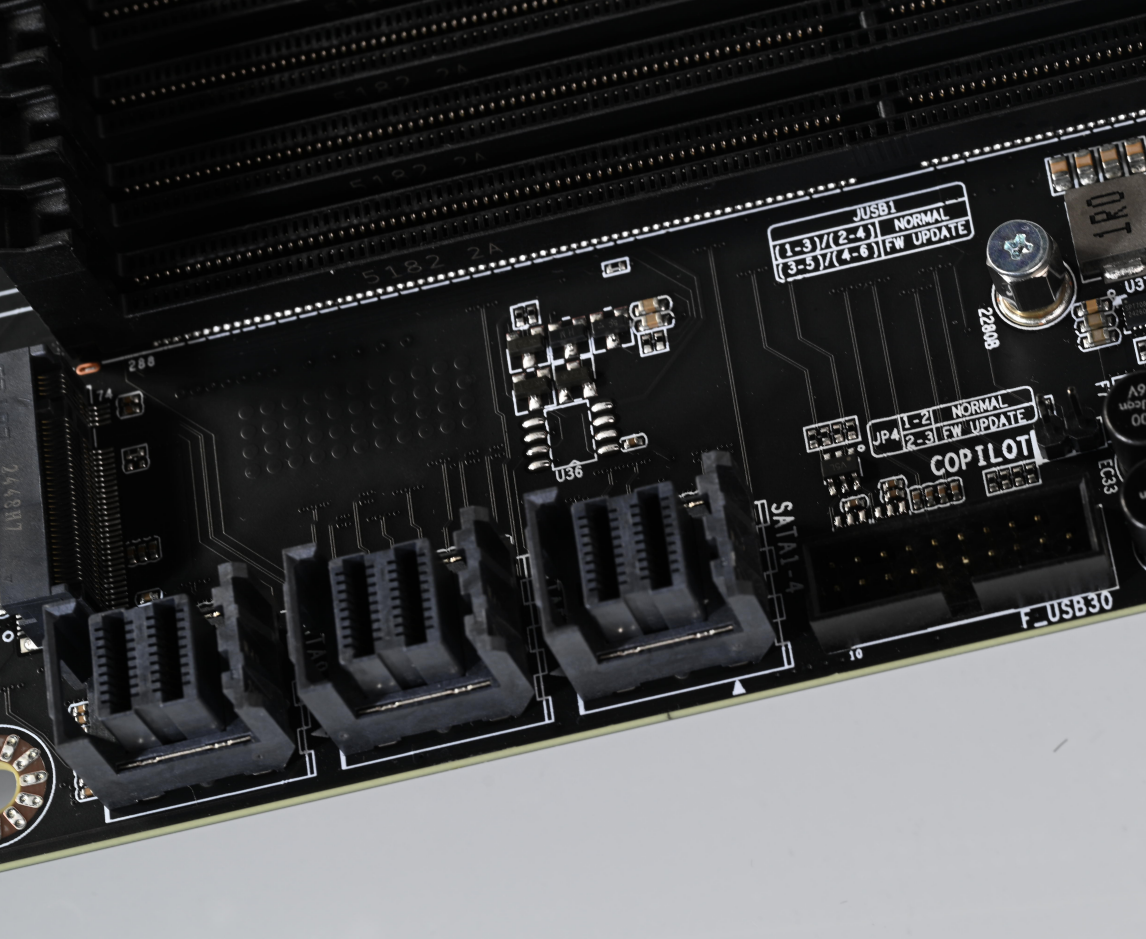 内存:4× DDR5 UDIMM (2DPC),支持 6600MT/s 超频。PCIe 插槽:1× PCIe 4.0×16;1× PCIe 4.0×4(物理全长)。存储:3× M.2 2280,PCIe 4.0×4;1×M.2 2280,PCIe 3.0×2;3× SFF-8643 (Mini-SAS HD),每个接口可转为 4 个 SATA III。网络:有线:1× Marvell 有线网卡,支持 10GbE;2× 英特尔 I226,支持 2.5GbE。无线:无。音频:瑞昱 ALC897 CODEC。外部 I/O:板内接口:1× 一分二 USB-A 480Mbps、1× USB-C 20Gbps、1× 一分二 USB-A 5Gbps、1× 板内 USB-A 480Mbps;后置接口:1× HDMI 2.0、1× DP 1.2、1× USB-C 10Gbps、1× USB-A 480Mbps、4× USB-A 10Gbps、2× 2.5GbE RJ45、1× 10GbE RJ45、1× 二合一音频插孔。
